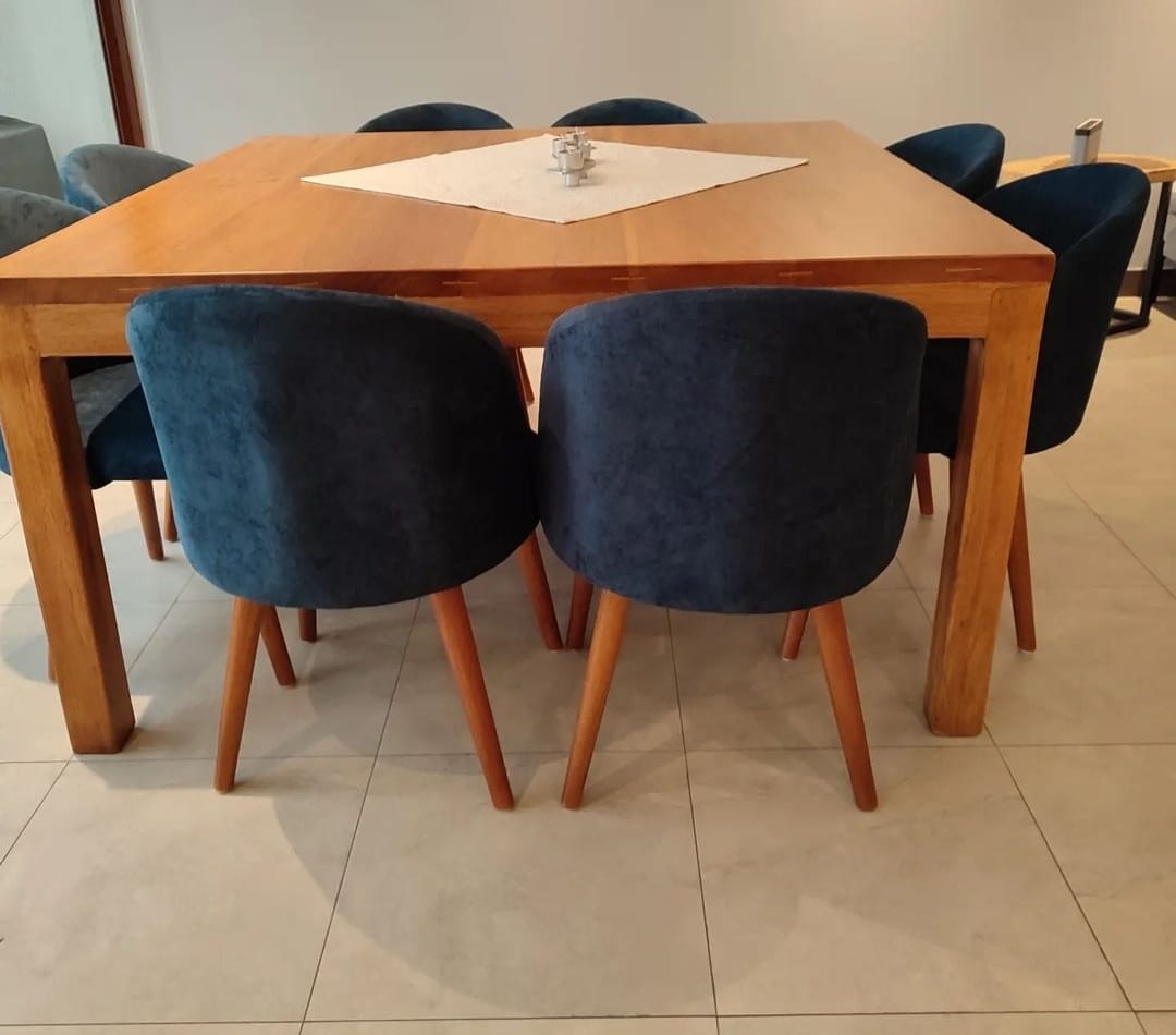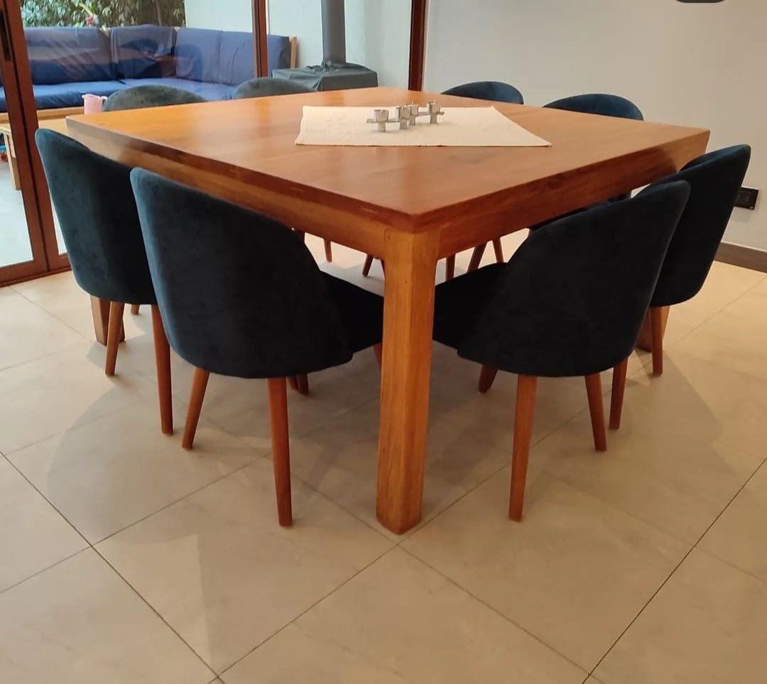 Mesa de madera sólida y sillas Isabel, diseño ergonómico, fabricación bajo pedido.