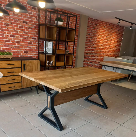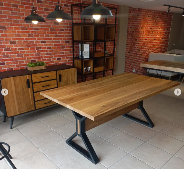 Mesa madera sólida, tablón de laurel del oriente, medida 1,50 x 0.90 para 6 puestos.