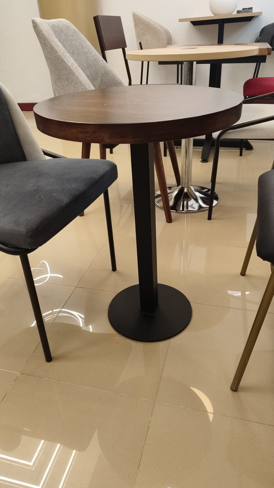 Base de hierro y base al piso platina pintura electrostática al horno tablero madera sólida medida 50 de diámetro ideal para heladería o cafetería.