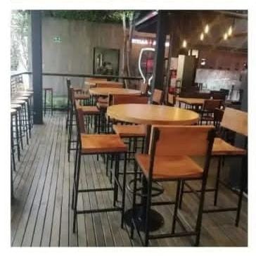 Fabricado con madera sólida de COPAL y platina de hierro con 60 cm de diámetro y 75 cm de alto