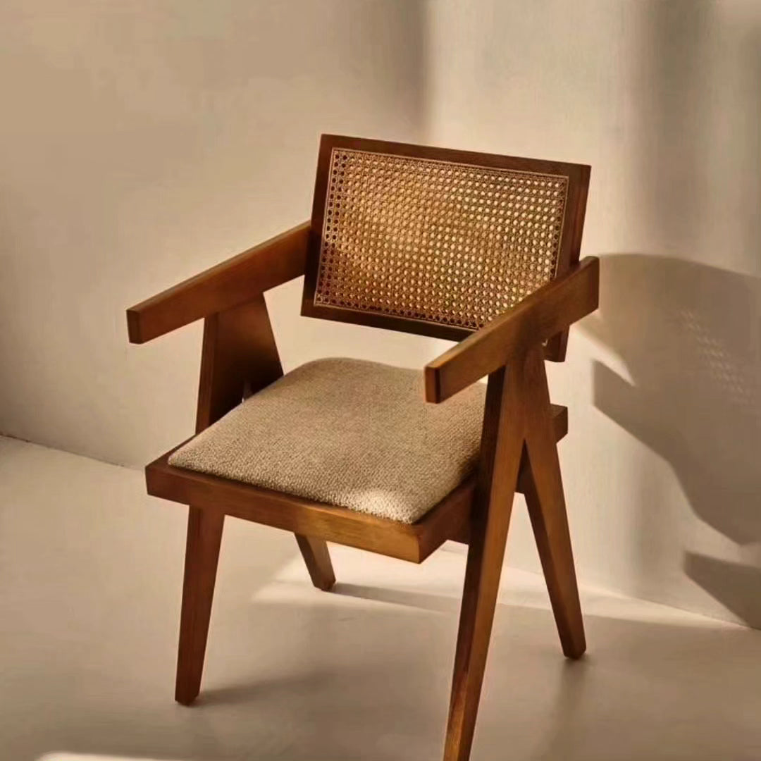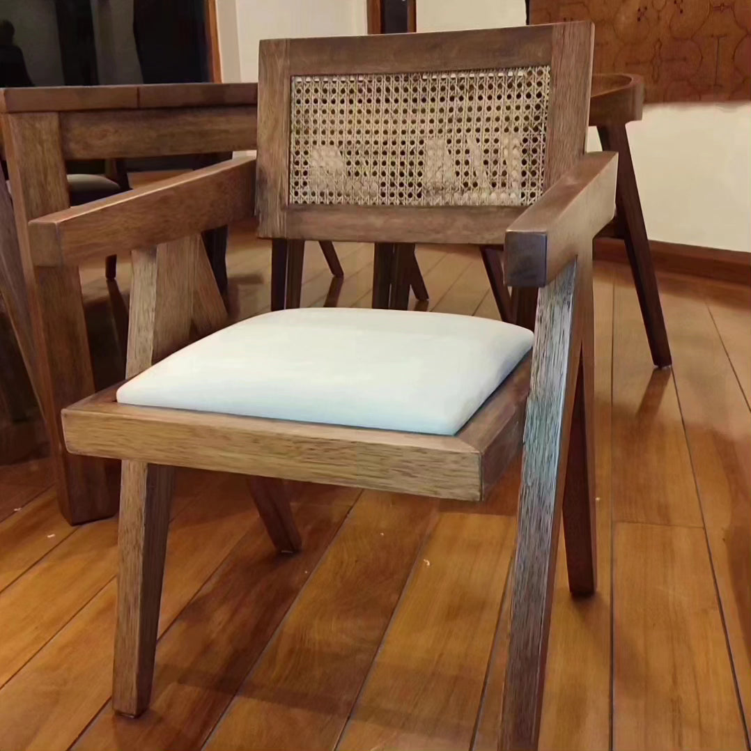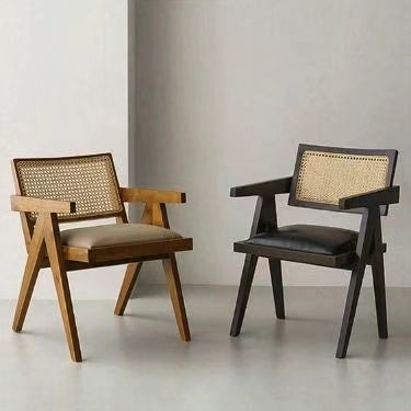 Silla de diseño en madera sólida y esterilla de ratán, se fabrica en color a su elección.