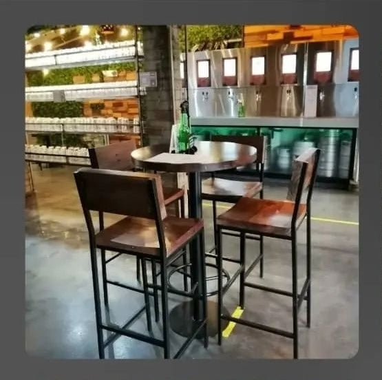 Silla alta en madera sólida laurel del oriente y base de tubo de hierro ideal para bares.