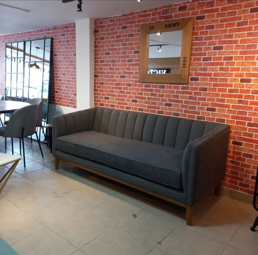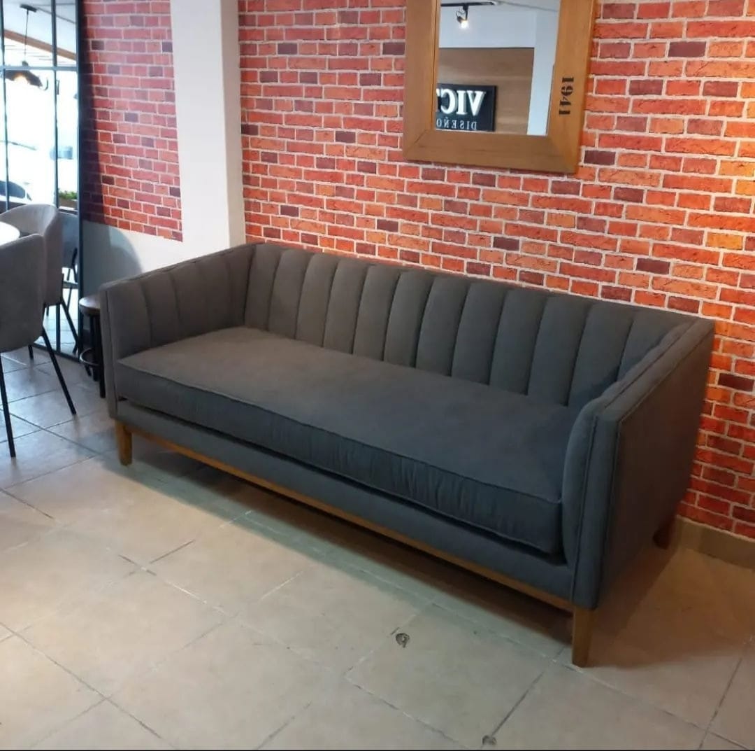 Sofá con armazón en madera sólida con esponja de alta densidad, tela importada de buena calidad.