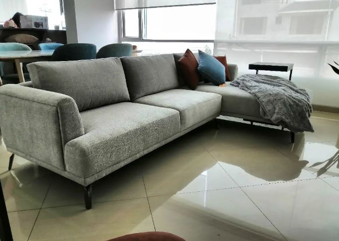 Sofá con armazón en madera sólida con esponja de alta densidad, tela importada de buena calidad